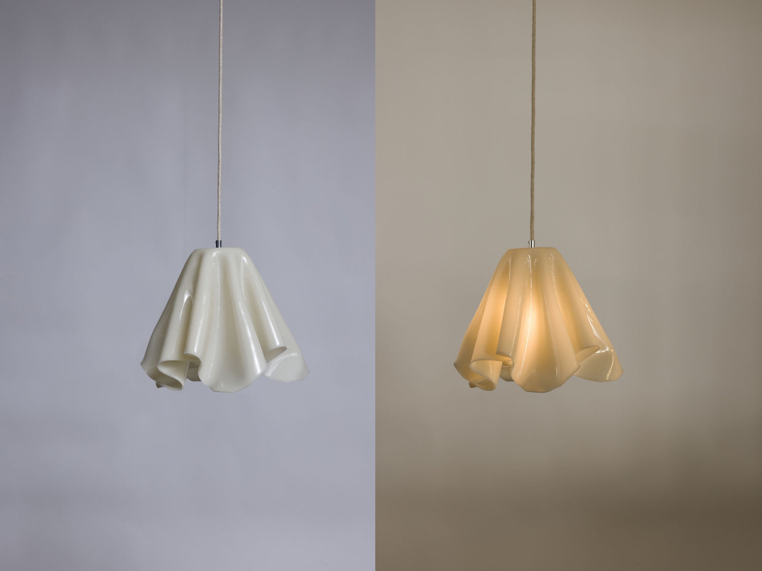 Wir sind stolz, unsere brandneuen handgefertigten Pendelleuchten präsentieren zu dürfen – entworfen und hergestellt in unserem eigenen Atelier. Jede Leuchte ist ein einzigartiges, handgefertigtes Kunstwerk, das mit der gleichen Sorgfalt und Ästhetik geschaffen wurde. Wie bei den anderen Kunstwerken ist der Produktionsprozess völlig energiefrei und umweltfreundlich. Die Leuchten eignen sich sowohl als Lichtquelle als auch als Statement-Piece – und sind natürlich nur in limitierter Auflage erhältlich.